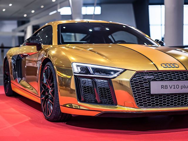 the second-generation of the R8 gets a ridiculous gold wrap to